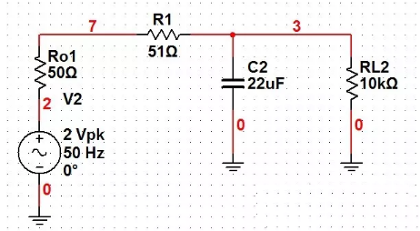 以上面的低通滤波器为例,假设前级电路的输出阻抗为Ro1,后级电路的输入阻抗为RL2,那么等效电路图变为: