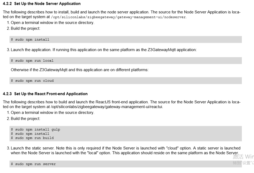 3.下载代码后,需要分别进入nodeserver目录、reactui目录进行依赖安装和应用部署(和大部分node应用一样),具体可以参考文档4.2.2章节,如下图所示