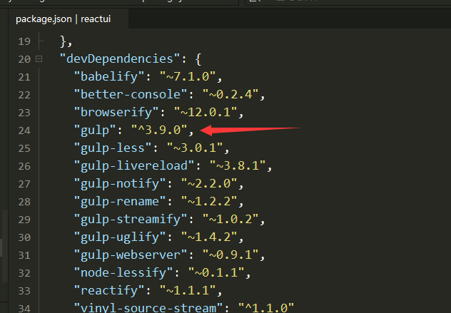 特别注意:npm 安装gulp时,需要带上版本号@3.9.0;因为现在gulp最新版本4.x为,在语法上和3.x有较大出入;reactui中用到的是3.x的语法,所以只能安装旧版gulp