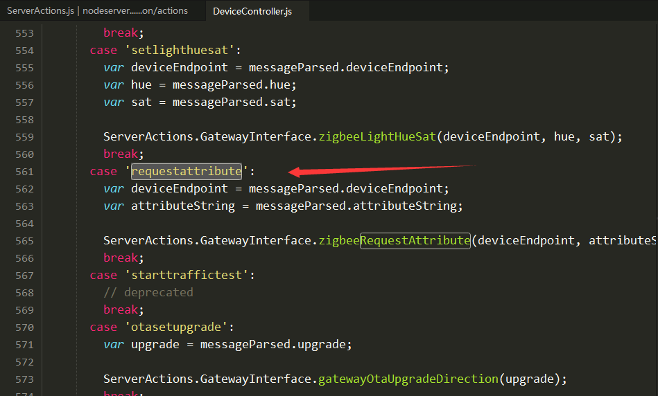 找到requestattribute,可以看到是调用ServerActions.GatewayInterface.zigbeeRequestAttribute方法。
