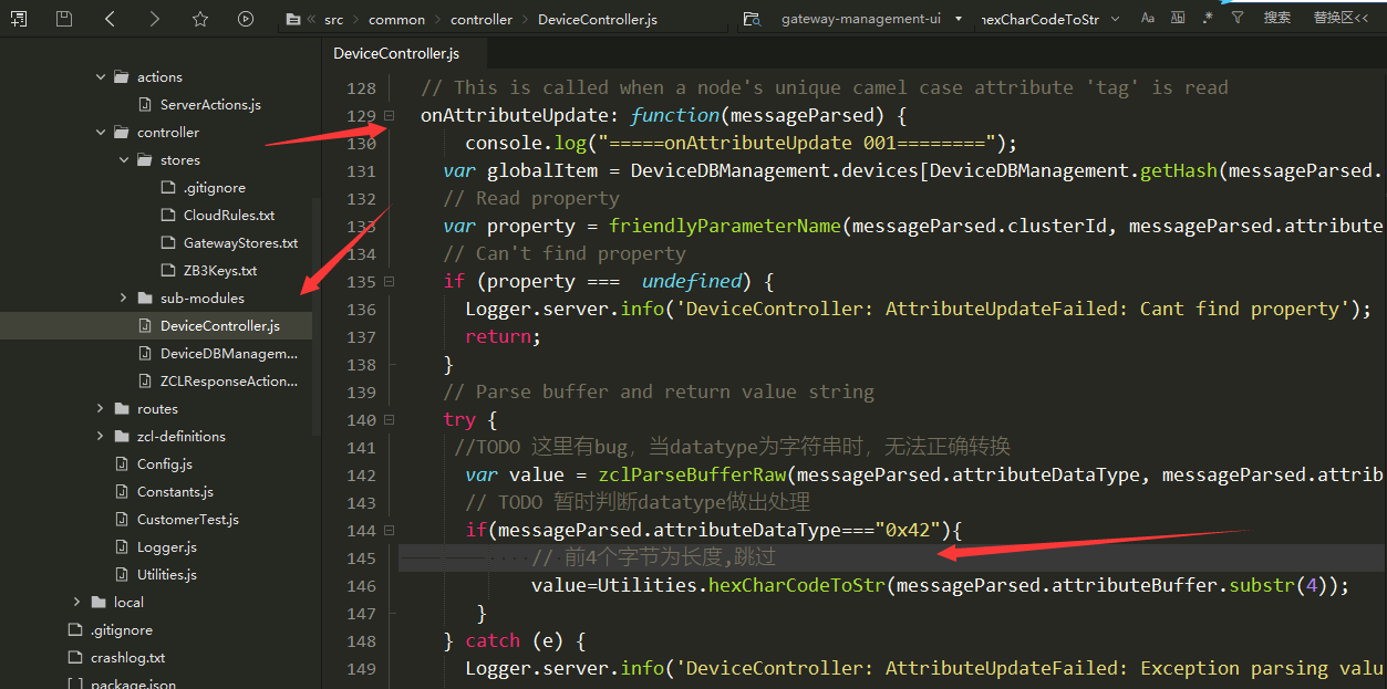 位于nodeserver中的DeviceController.js文件中的onAttributeUpdate方法