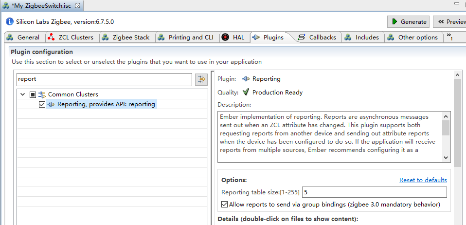 对于efr32要在plugin勾选Reporting插件,如下图所示
