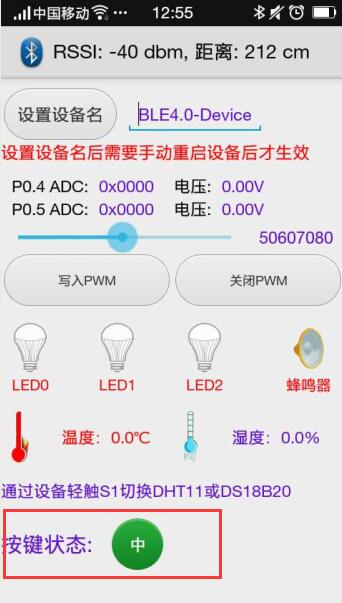 3、编译无误,下载。连接APP,手机APP接收到了板子相应的键值。实验ok。