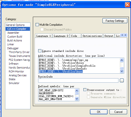 1、在IAR工程中的option选项 添加相应的keys文件路径: