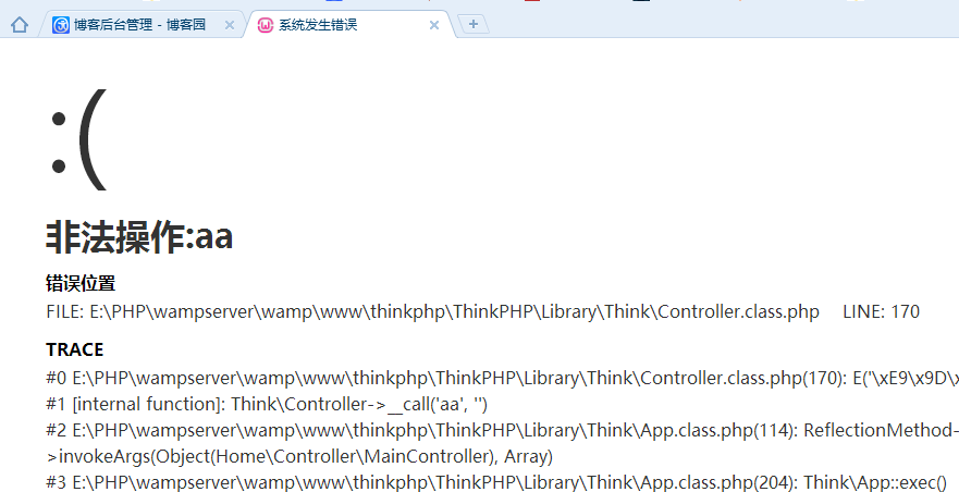显示的错误信息过于详细,为安全以及优化页面起见,实行空操作