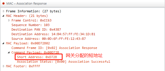 关联请求入网,由设备发出,此时设备还没有分配短地址,因此在MAC层显示的原地址为设备长地址。