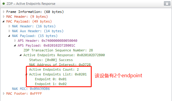 设备给网关回应的 endponints 数