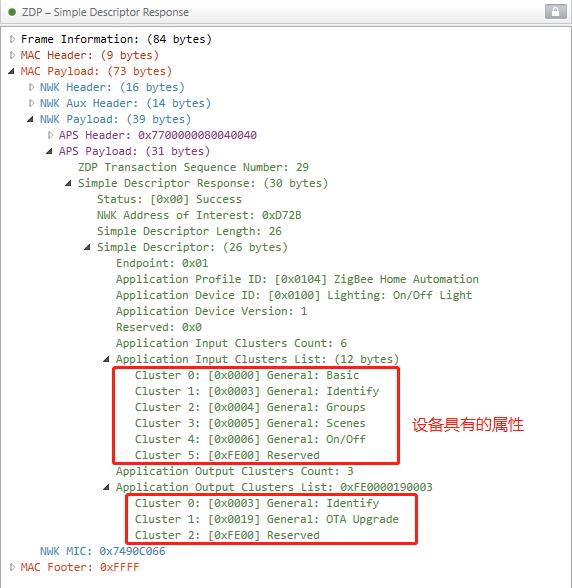 以上就是朴素板凳最近收集整理的关于zigbee入网过程分析(mac层分析),附Ubiqua抓包1.beacon request2.beacon3.association request 4.data request 5.association response6.transport key7.device announce8.active endpoints request9.active endpoints response10.simple descriptor request11.simple descriptor res的全部内容,更多相关zigbee入网过程分析(mac层分析),附Ubiqua抓包1.beacon内容请搜索靠谱客的其他文章。