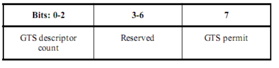 2.2.1.2 GTS许可(GTS Permit)字段,当如果macGTSPermit设置为TRUE时(即PAN协调器正在接受GTS请求)应设置为1