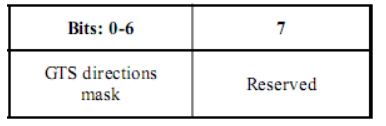 2.2.2.1 GTS方向掩码(GTS Directions Mask)字段包含一个掩码,用于标识超帧中GTS的方向