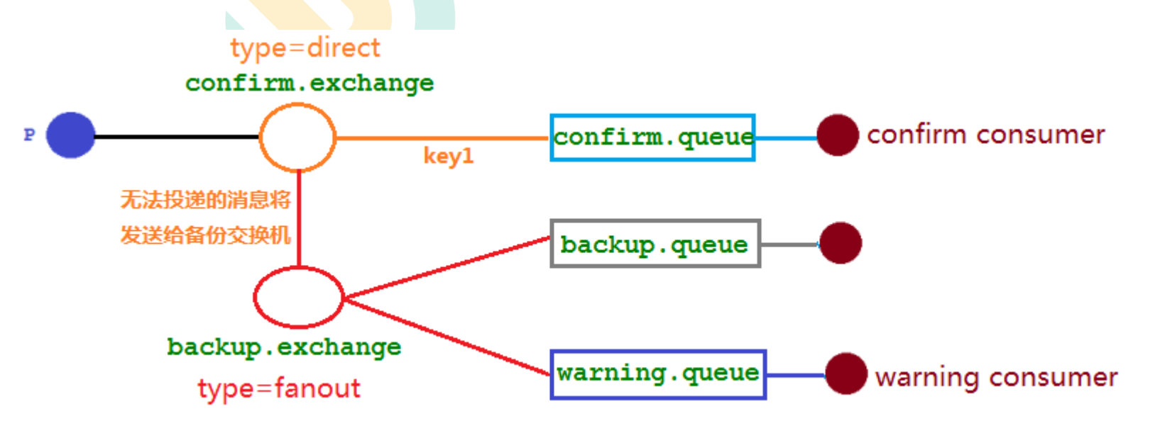 /**确认交换机配置备份交换机 以确保宕机后将消息转发到备份交换机*/