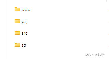 第二步:在test文件夹下新建prj文件夹(工程文件)、src文件夹(放置代码程序)、tb文件夹(放置仿真文件)、doc文件夹(放置本工程说明);doc文件夹可以不用加入