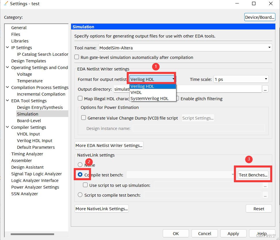 (9)选择仿真工具,点击next(本人用的是ModelSim-Altera,有可能其他人的可能会不支持,所以要选择ModelSim→这个设置在系统环境变量里,有需要的可以添加系统环境变量)