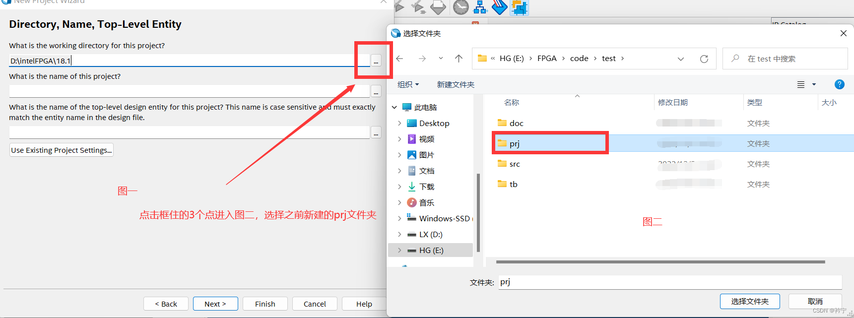 (3)之后会出现图一界面,然后如下图找到自己新建的prj工程文件夹位置并选择它