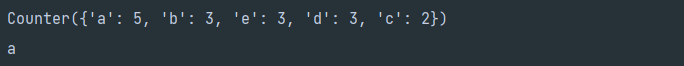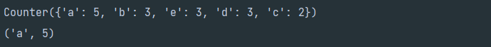 如果我们需要出现频率最大的一个,只需要将Counter()处理之后的第一个元素筛选出来即可(第一个一定是最大的,但不一定是唯一最大的),如下:
