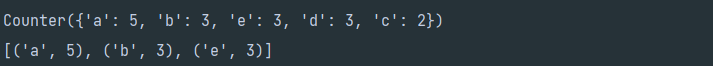 如果想要筛选出出现频率最大的前n个,则需给most.common()一个参数n,如下: