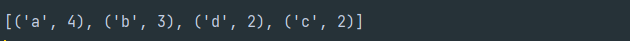 如果想要筛选出出现频率最大的元素(在这里就是将“a”筛选出来),则只需要在上述代码的最后一行代码后面再加一个[0]就ok了.
