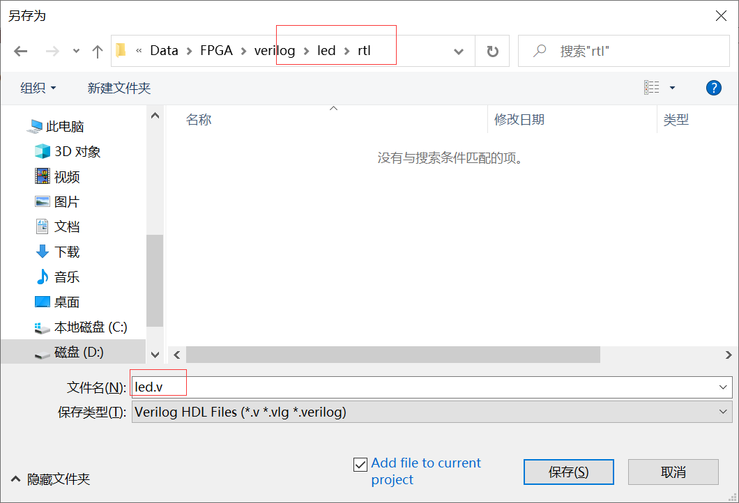 然后保存源文件,将存放的路径修改为rtl文件夹下。