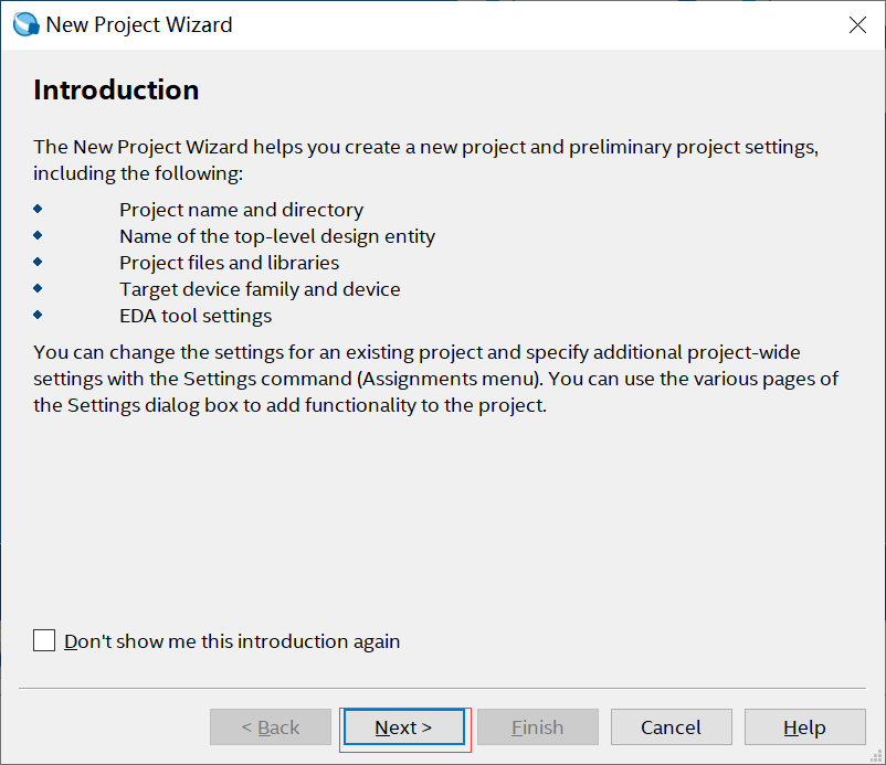 在“ Introduction”介绍页面中,我们可以了解到在新建工程的过程中要完成以下五个步骤: