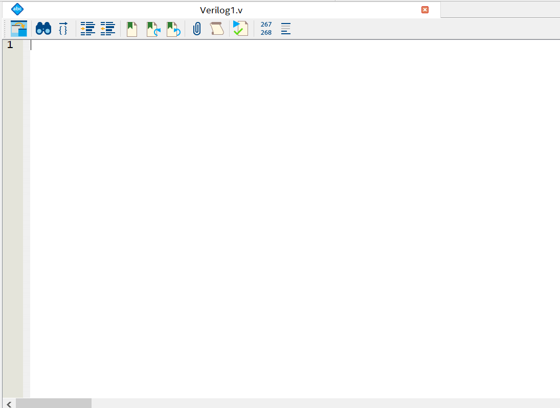 然后会出现一个Verilog1.v文件的设计界面,用于输入Verilog代码