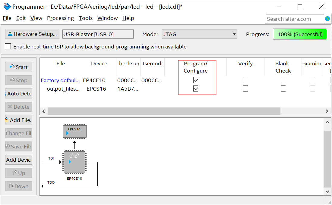 添加下载.jic文件,需要在【 Program/Configure】方框下面点击打勾