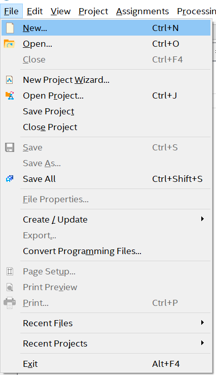 创建工程顶层文件,在菜单栏中找到【 File】→【 New】