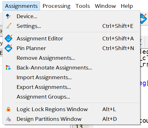 在工程中,需要配置双用的管脚。首先在 Quartus软件的菜单栏中找到【 Assignments】→【 Device...】