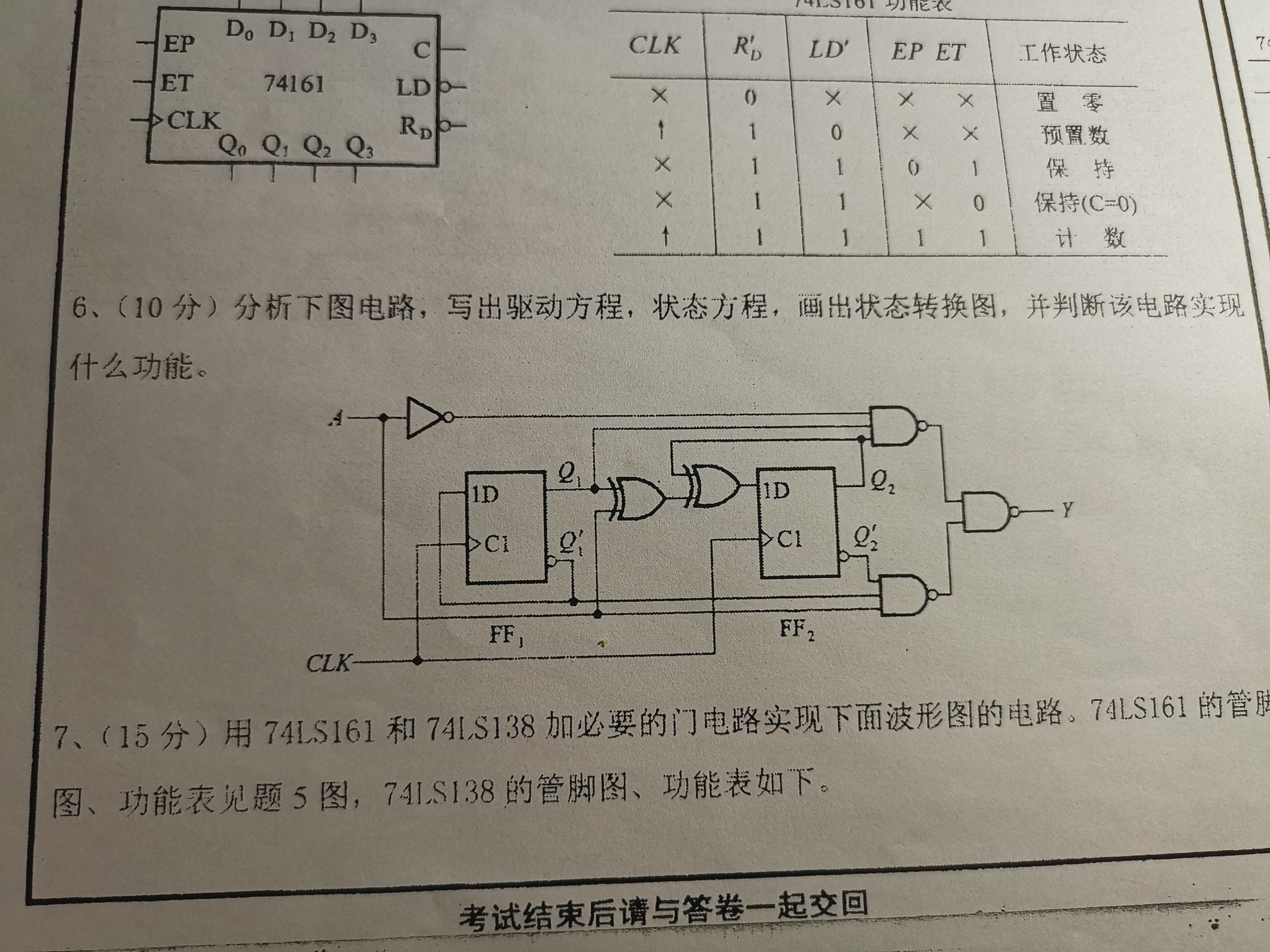 (10分)分析下图电路, 写出驱动方程、状态方程, 并画出状态转换图, 之后判断该电路实现的逻辑功能.