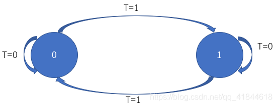 Qn+1 = T Qn ' +T ' Qn = T⊕Qn (T是上一时刻的输入 Qn是上一时刻输出 )