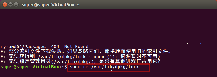 以上就是精明宝马最近收集整理的关于ubuntu提示无法获得锁lock该怎么解决?的全部内容,更多相关ubuntu提示无法获得锁lock该怎么解决内容请搜索靠谱客的其他文章。