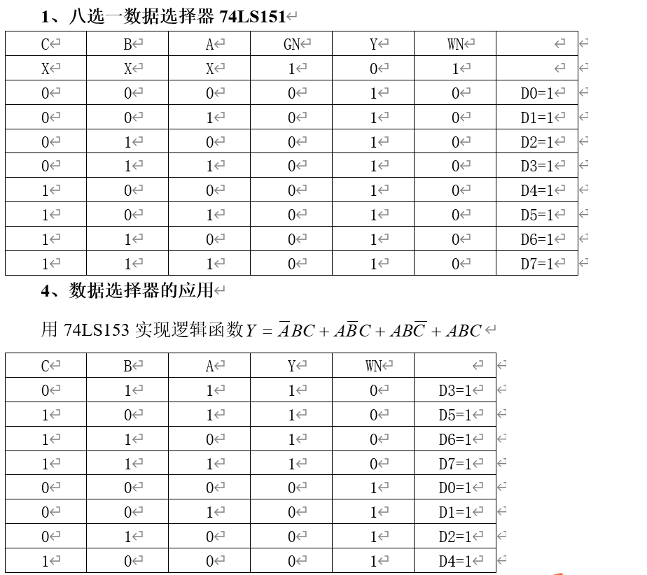 1.掌握数据选择器的逻辑功能和使用方法。