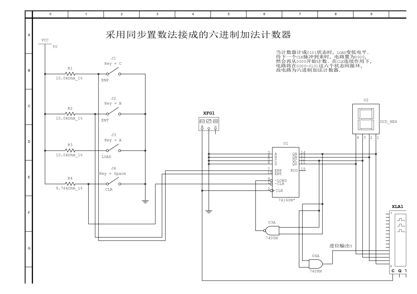 74160同步置数法接成同步六进制加法计数器