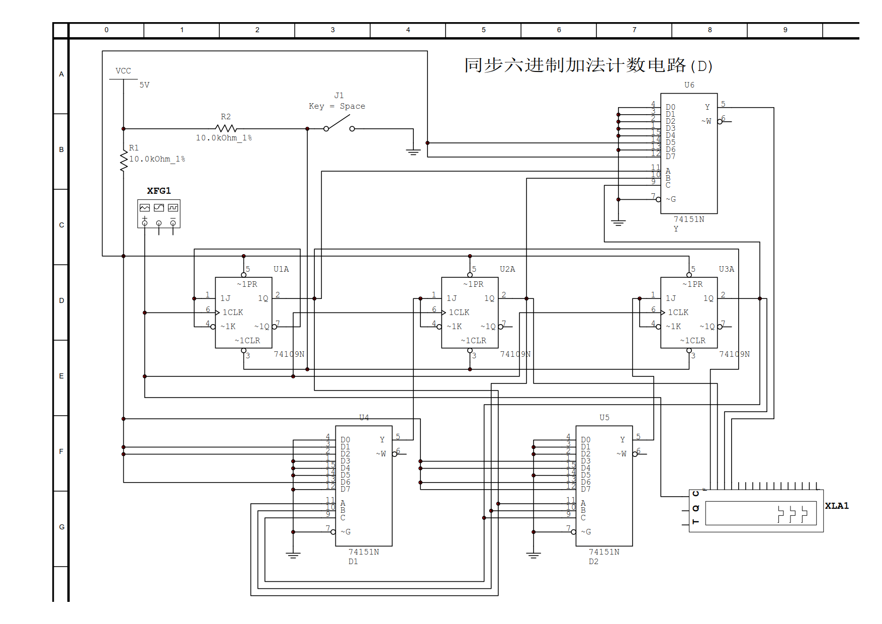 同步六进制加减法可逆计数器(D)