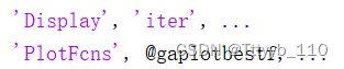 这是含非线性约束的GA用法,那么在结构体options中( 对于options结构,大家可以在命令行输入doc ga查看帮助文档),我们可以设置如下: