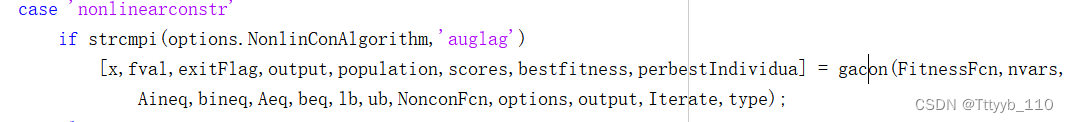 ①打开ga函数内置代码,从后面往前找,找到Call appropriate single objective optimization solver(调用适当的单目标优化求解器)