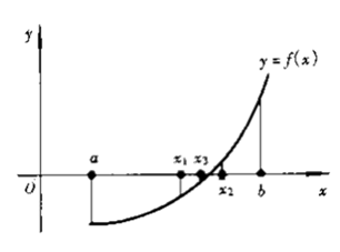 原理:若 f 的值在C[a, b]中,且 f (a) · f (b) < 0,则 f 在 (a, b) 上必有一根。