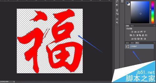 3、然后,选择要保留的主体部分,使其形成选区,然后由选区生成路径,这样你的路径面板里就会有个福字路径了,然后在形成的福字路径上Ctrl+C复制一下。