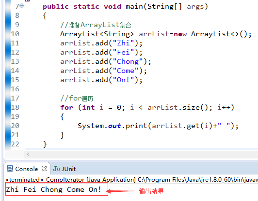 在实际使用中,for方法是允许一边遍历一边更改、删除等处理集合的——动态修改,但是foreach和iterator方法而是不被允许的,这是因为在iterator内部是先将ArrayList的数据读进来然后再对读进来的信息做处理,并且不允许我们在遍历的同时对ArrayList进行修改。下面分别对for和iterator进行实验: