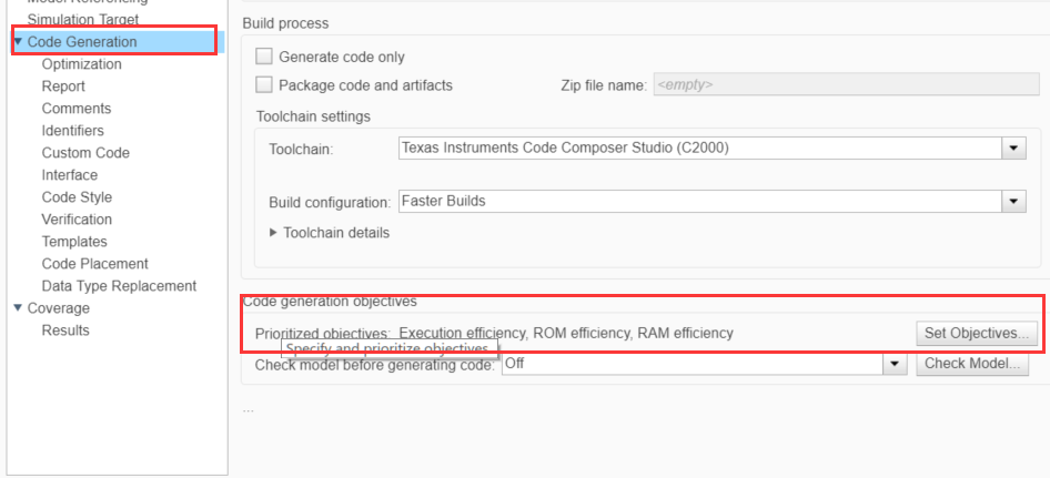 19)在Code Generation中选择执行优先、ROM优先、RAM优先。