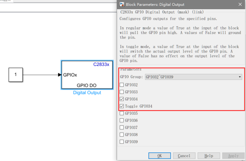 勾选Toggle指的是翻转GPIO34.(翻转的时间我感觉跟模型的采用频率有很大关系)