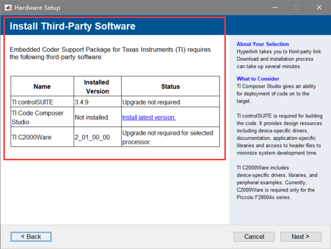 1)matlab与ccs联合编译需要安装对应的matlab版本和ccs版本,且只有2016a以上的matlab支持c2000系列。具体对应关系参照: