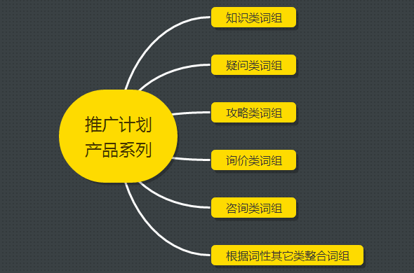 如上图,针对一个具体的产品小编划分了知识类词组、疑问类词组、攻略类词组、询价类词组、咨询类词组以及其他类型的词组,其实不管如何划分,只要是想做到精细化运作的用户均需要根据词性有针对性的构建关键词组,因为一个推广组里的关键词整合了一类用户的核心诉求,推广组建好之后,后期的创意描述、落地页面的选择都会围绕着用户的真实需求进行设定,以保证用户点击进去之后能够最大化的满足用户需求,促进转化。