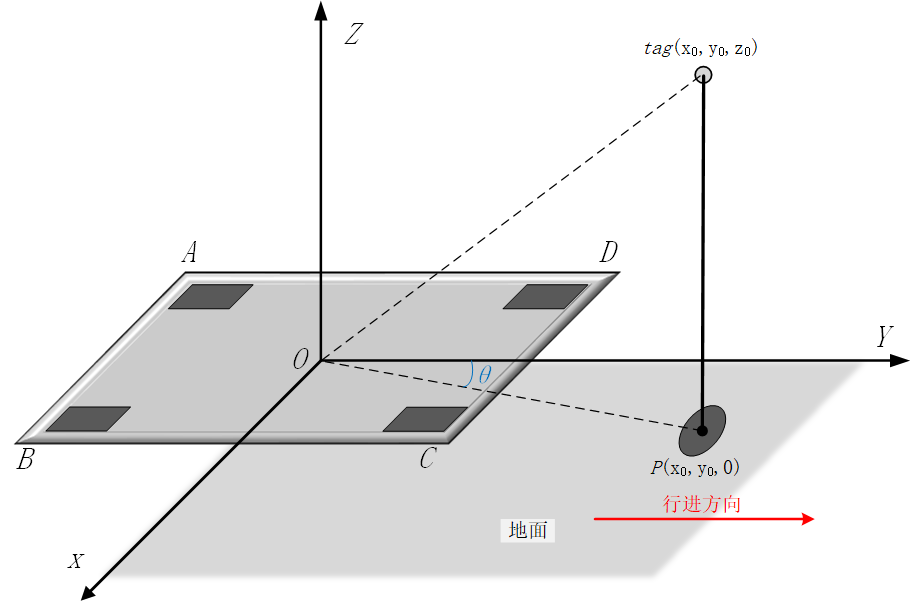 基站与标签之间的距离可以表示为: