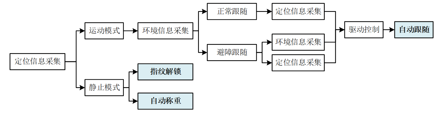 在软件设计中,以模块化的方式进行编程,依次对自动跟随系统、指纹解锁、智能称重部分进行了软件设计,并在调试中不断优化程序。