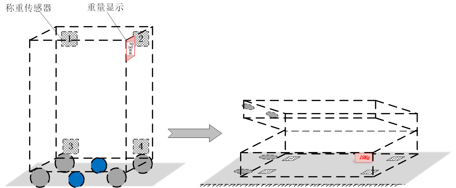 其中,行李箱重量m0即为上文“砝码”重量,由于行李箱在设计完成之后,重量是固定的,因此m0为已知,通过比较m0和重量值示数m1来调增校准系数,即可完成校准过程。