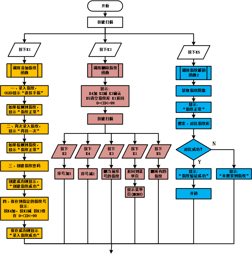 (3)编译、下载程序,检查OLED显示、按键、指纹录入、指纹删除、指纹解锁功能是否正常。