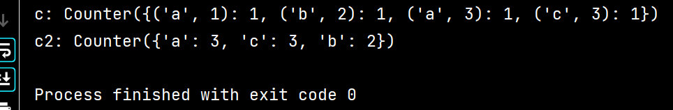 c2 = Counter({'a': 1, 'b': 2, 'a': 3, 'c': 3}) # 字典
