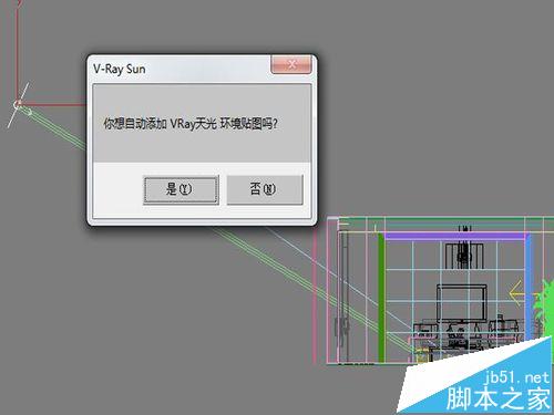 1、首先,选择Vary 阳光,在窗户的位置模拟太阳从窗户穿过,如图操作,然后会出现是否添加天光贴图,选择是。