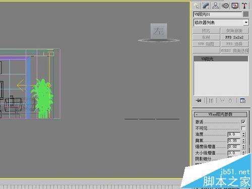 2、选择刚建的Vary 阳光,回到修改器,修改阳光参数,一般情况下不可见、臭氧、阴影偏移、光子发射半径不需要修改。