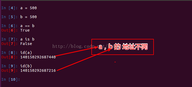 通过上面代码的比较,我想很容易看得出," is" 是用来比较 a 和 b 是不是指向同一个内存单元,而"=="是用来比较 a 和 b指向的内存单元中的值是不是相等。下面敲黑板,如果你自己的实验结果和我的不一致,请不要怀疑我,也不要怀疑自己的编译器,我想你应该遇到了下面的这种情况: